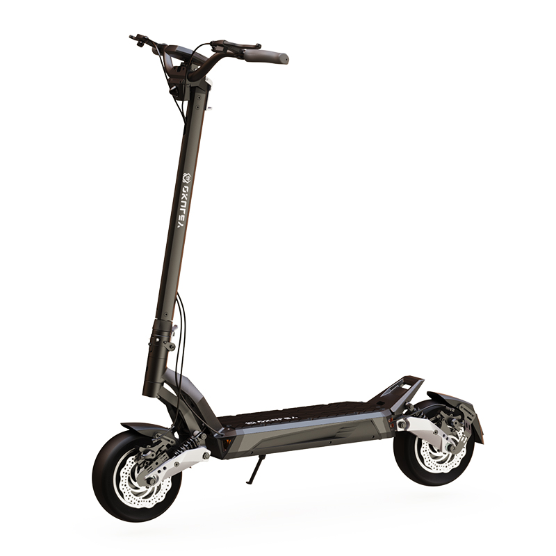 Hulajnoga elektryczna OKULEY M10 All Terrain wyposażona jest w 10-calowe opony pneumatyczne, zapewniające doskonałą przyczepność i komfort jazdy. Jego unikalna konstrukcja umożliwia szybki demontaż. Łatwy w utrzymaniu. Przednie i tylne amortyzatory z podwójną sprężyną mogą złagodzić uderzenia na nierównych drogach. Ponadto zapewnia również opcje hamulca tarczowego i hamulca hydraulicznego w celu zwiększenia bezpieczeństwa.