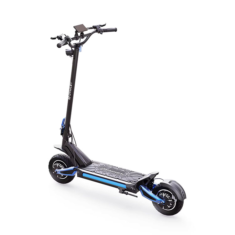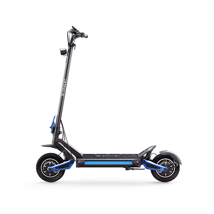 Hulajnoga elektryczna OKULEY R10 wyposażona jest w 10-calowe opony pneumatyczne, które zapewniają doskonałą przyczepność i komfort jazdy. Jego unikalna konstrukcja pozwala na szybki demontaż. Łatwy w utrzymaniu. Amortyzator z podwójną sprężyną może zmniejszyć wpływ powodowany przez nierówne drogi. Ponadto zapewnia również opcje hamulca tarczowego i hamulca hydraulicznego w celu zwiększenia bezpieczeństwa.